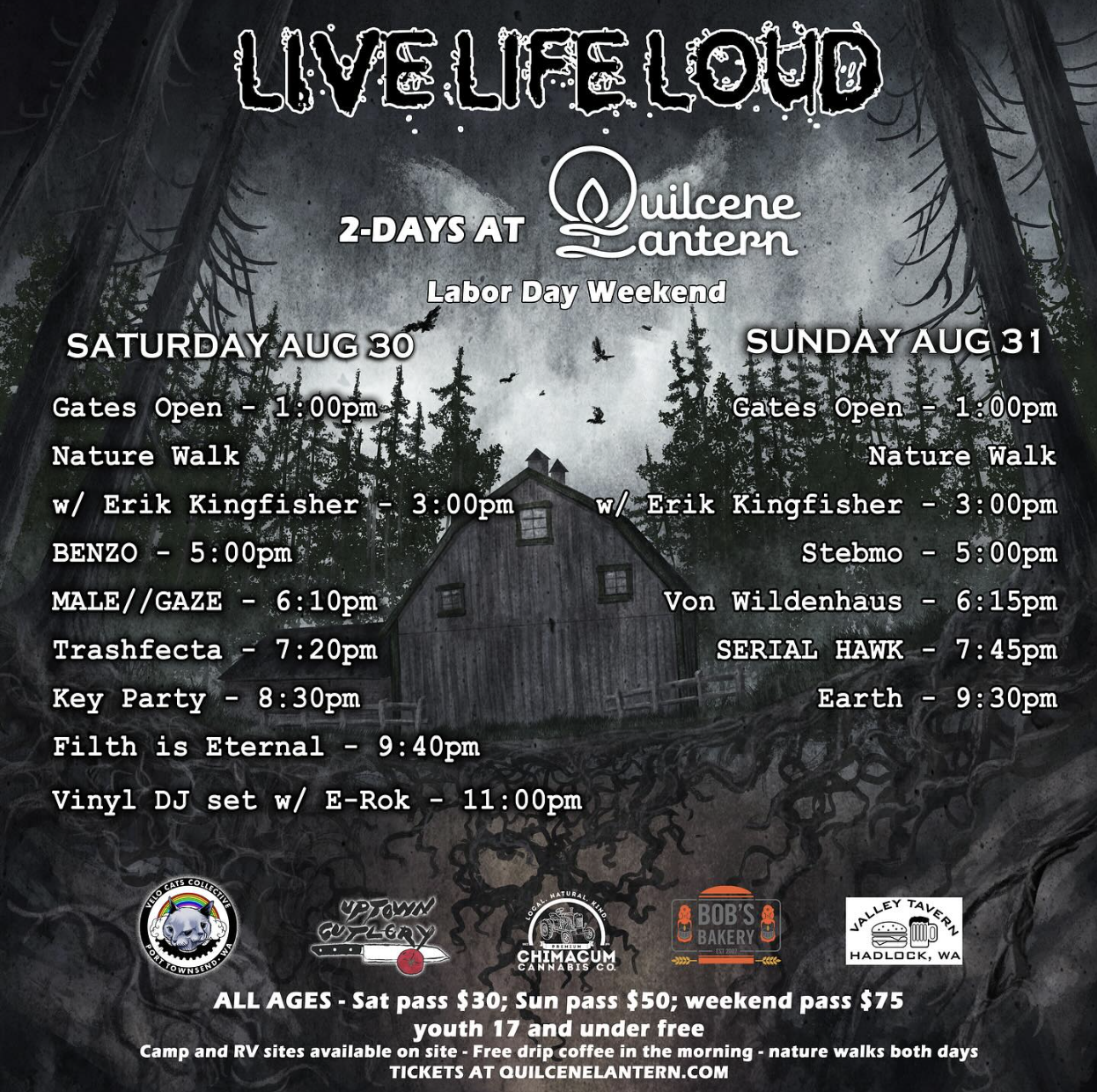 We are fortunate enough that the Lantern is one of the stops chosen to play Hex in its entirety. Earth will perform as the Sunday headliner during Live Life Loud 2 Days at the Quilcene Lantern, a festival featuring bands and bucolic camping Saturday and Sunday.
