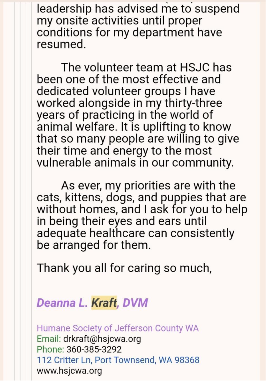 PORT TOWNSEND, WA – A major crisis is unfolding at the Humane Society of Jefferson County (HSJC), with multiple former staff and a volunteer providing detailed, firsthand accounts alleging severe animal neglect, managerial misconduct, and a retaliatory work environment under new executive leadership. These allegations, supported by photographic and video evidence, stand in stark contrast to public assurances from shelter management that operations are running smoothly.